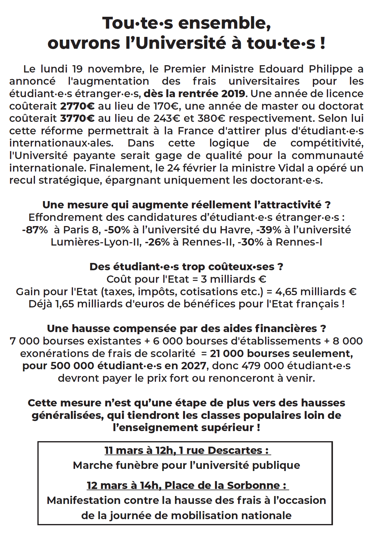 Distribuer des tracts, en prenant le temps d’expliquer en détail nos arguments, reste une des meilleures manières de faire connaître nos revendications et de construire la mobilisation dont nous avons besoin pour que nos universités se soient pas marchandisées.