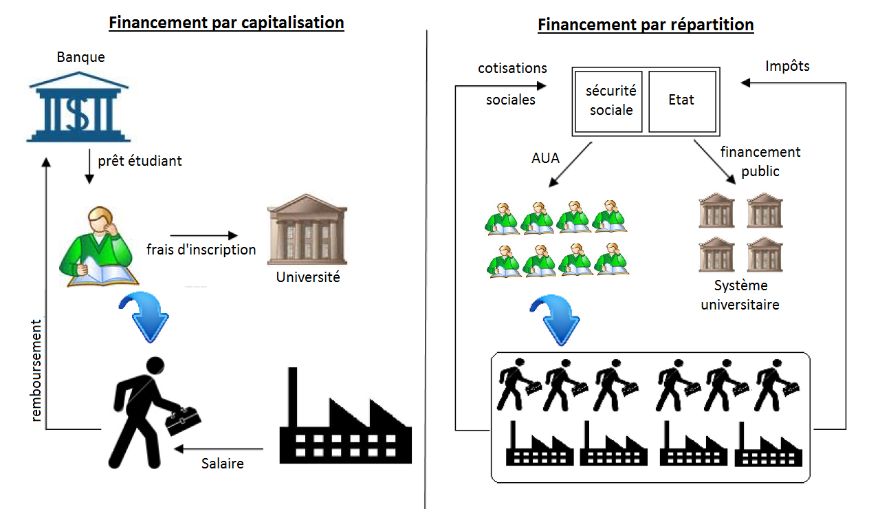 Nous proposons une allocation de 1 000 € /mois (600€ si logé·e) pendant 12 mois par an pour 2,5 millions d’étudiant·es soit 26 milliards brut (21 milliards net en comptant les aides déjà existantes). Pour le financer, une extension de la branche famille de la sécurité sociale : augmentation de 3 points des cotisations sociales (patronales) de 5,4% à 8,5%. Les étranger·es toucheraient aussi l’allocation, d’autant que les employeurs des diplômé·es cotisent déjà à la branche famille quelle que soit la nationalité.