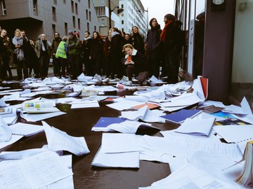 Aujourd’hui, facs et labos en lutte était à l’HCERES pour rendre ses rapports au Haut Conseil. L’évaluation de la production scientifique soit être faite par les scientifiques dans un but de validation et d’amélioration des connaissances. Nous ne voulons pas d’un haut conseil qui quantifie la production scientifique pour mettre les chercheurs et les chercheuses en concurrence.
