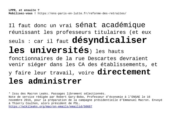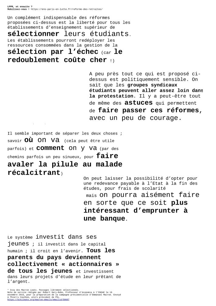 Nous avons désormais tout un jeu d’affiches, prêtes pour l’impression et le collage, afin que nul·le ne puisse plus longtemps ignorer le versant « universitaire » des Macron Leaks !