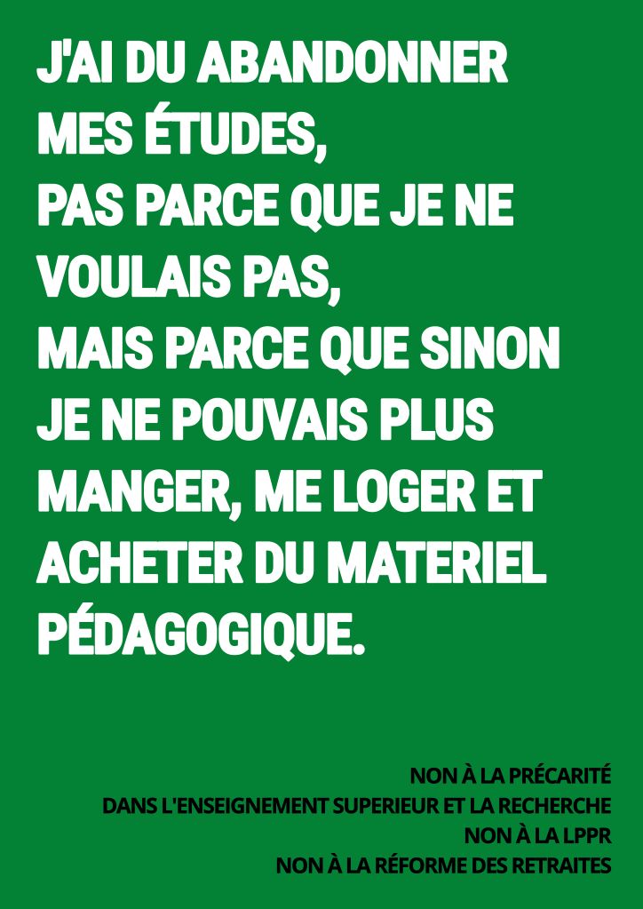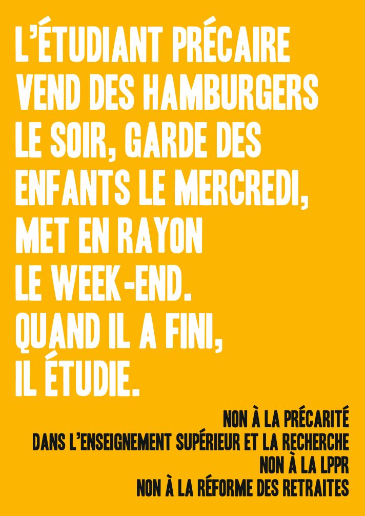 Nos collègues et camarades de Tours ont réalisé une série d’affiches dénonçant la précarité dans l’enseignement et la recherche. Nous les mettons ici à disposition en format image, pour une diffusion aisée sur internet et les réseaux sociaux, mais également au format PDF, pour les imprimer et les coller partout !