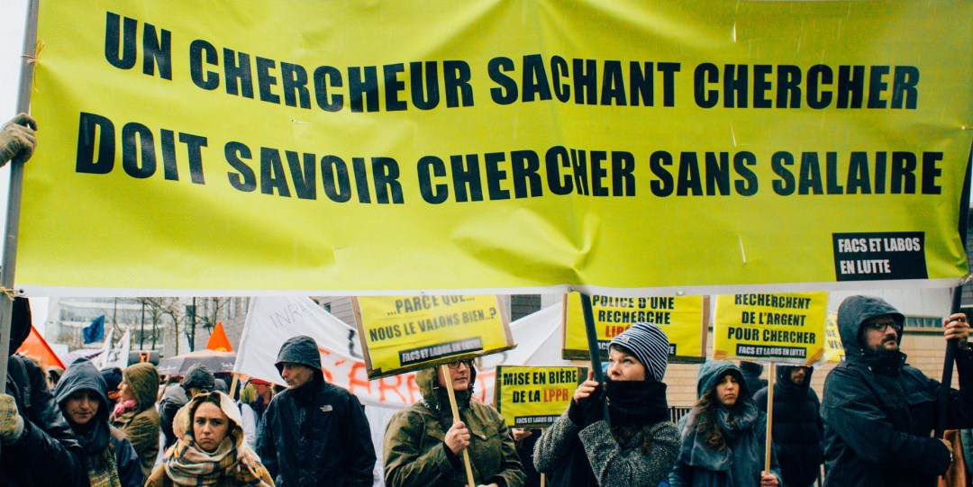 Le 19 mars dernier, lors d’une visite à l’Institut Pasteur, souhaitant faire montre de son volontarisme dans la lutte contre le COVID-19, le Président de la République a annoncé une augmentation de cinq milliards d’euros sur dix ans du budget de la recherche en France. Ces effets d’annonce ne sont nullement à la hauteur des enjeux et des revendications portées par les facs et les labos en lutte depuis le 5 décembre.