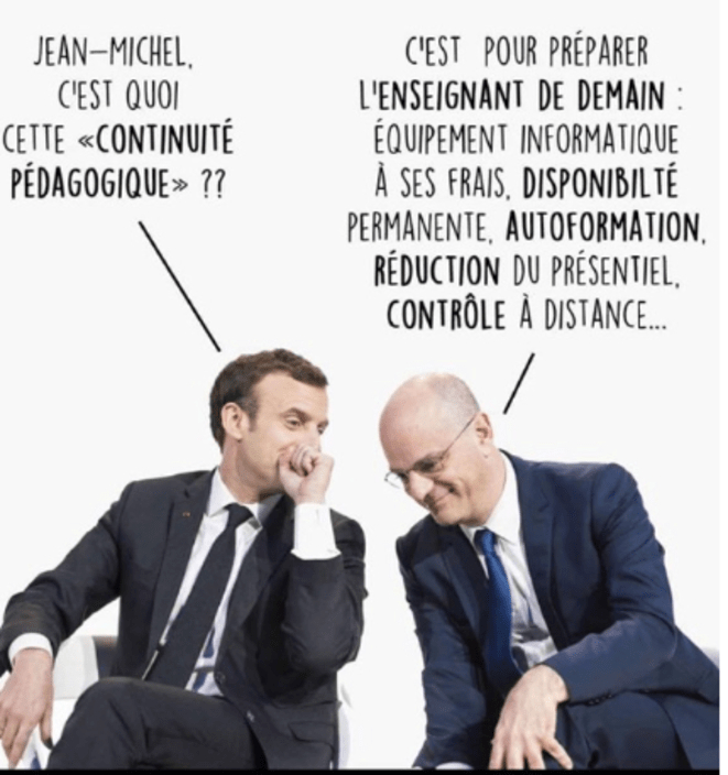 Si on résume, tout s’est passé pour le mieux, on a même fait mieux à distance que dans nos salles parfois vétustes et nos amphis bondés. Pour beaucoup les examens en ligne ont commencé malgré toutes les mises en garde des étudiant·es, des professeur·es et des syndicats. La question de la sécurité numérique se pose. La fameuse fiche n°6 « Évaluer et surveiller à distance » indique une liste de fournisseurs de services qui permettent de mettre en place une télésurveillance des examens. Ces fournisseurs de service n’ont rien à envier à la CIA ni aux meilleurs scénarios de science fiction : reconnaissance faciale, détection de bruits suspects dans la pièce, et même analyse comportementale pour détecter la triche. L’autre jour, un perturbateur professionnel s’est pointé dans des cours en ligne. Il avait demandé des codes pour rejoindre des cours et faire le mariole. Il a fait ça dans beaucoup de cours, du coup, ça a donné des idées à des étudiant·es qui ont interrompu des réunions Zoom de départements pour porter leur revendications… Le gouvernement a répondu par la répression et le contrôle, as usual me direz-vous quand on voit qu’il préfère financer des drones qui disent aux gens de rentrer chez elleux plutôt que de financer des tests et des masques.