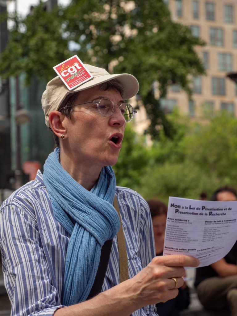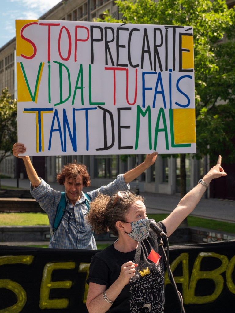 « Décidons que nous disons ensemble non à cette précarisation de l’enseignement supérieur, non à cette transformation capitaliste de l’enseignement supérieur, non à ce néolibéralisme qui est là pour détruire tous les espoirs que les intellectuel·les français·es et étrangèr·es ont contribué à construire ensemble et à inscrire dans la constitution. Il faut lutter ensemble, pour que demain soit meilleur pour tout le monde. »