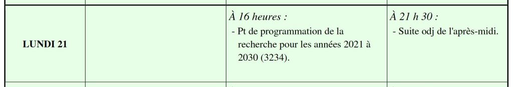 Le lundi 21 septembre le projet de loi [rebaptisé projet de loi de programmation de la recherche pour les années 2021 à 2030 et portant diverses dispositions relatives à la recherche et à l’enseignement supérieur] sera examiné en séance à l’Assemblée nationale.