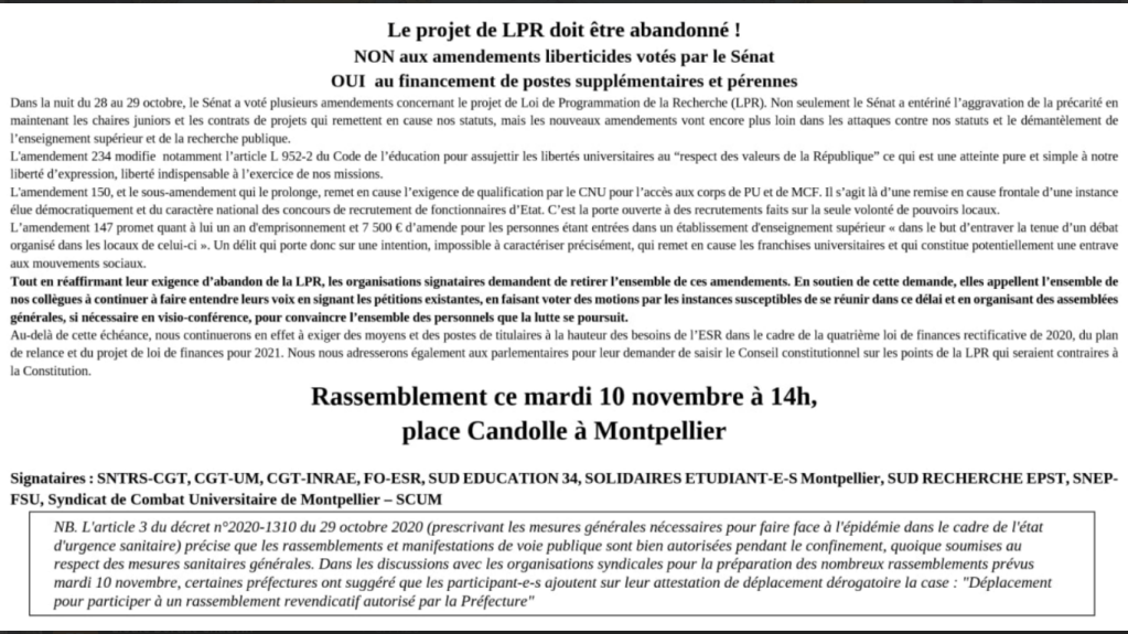- Comme l’intersyndicale de l’ESR de Montpellier, nous appelons à rejoindre les collègues de l’Éducation nationale dans la rue !