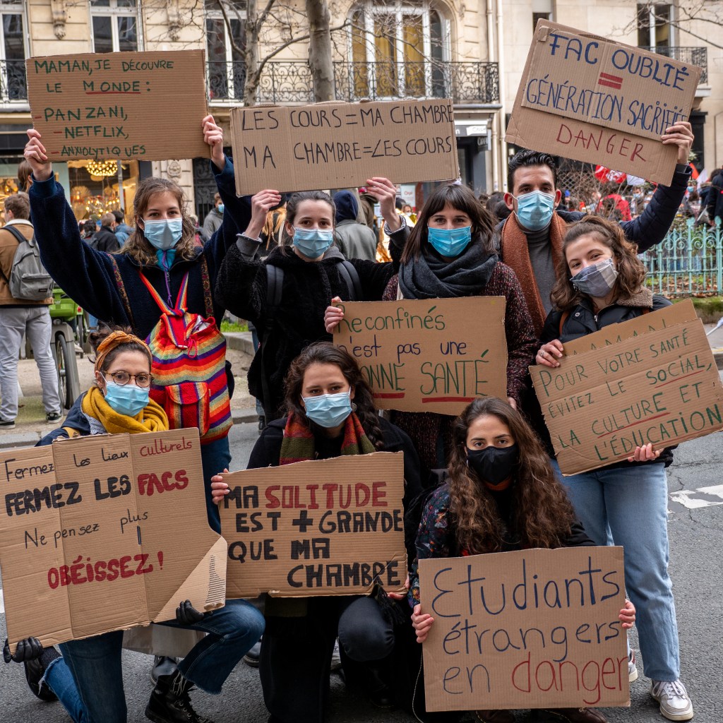 Exigeons que les facs rouvrent avec tous les moyens humains et sanitaires nécessaires afin que les enseignant·es aient les moyens de répondre au besoin de présentiel mais aussi à l’impératif du distanciel pour celles et ceux qui ne souhaitent pas revenir pour raisons de santé. Agissons pour que les CROUS augmentent et élargissent immédiatement les aides financières et matérielles, effectuent des remboursements sur les logements et assouplissent les délais de pré-avis. Faisons en sorte que le gouvernement instaure tout de suite un élargissement du RSA au 18-25 ans, en attendant la mise en place de meilleurs revenus étudiants.