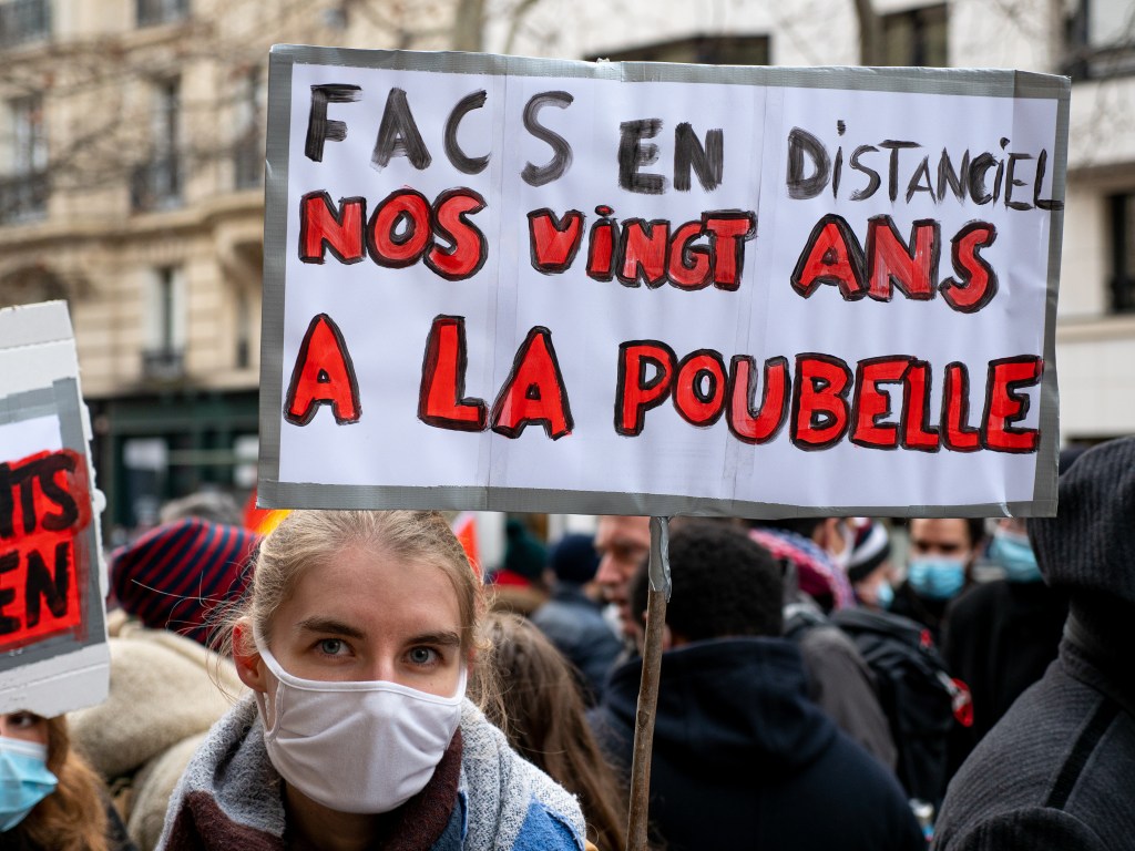 On retiendra de ce gouvernement, qui fait pleuvoir les millions et les milliards pour sauver les entreprises du CAC 40, son inaction face à la précarité et aux souffrances des étudiant·es qui poussent certain·es à des gestes fatals, tandis que les travailleur·ses des universités sont tenu·es de faire l’impossible sans aucun moyen ni poste supplémentaire. On retiendra les tweets et discours ministériels se rependant en inepties sur le danger que représente le « partage des bonbons » à la pause. On se souviendra aussi que jeudi 14 janvier la Ministre a enfin pris la parole dans une conférence de presse du gouvernement, pour la première fois depuis le début de la crise sanitaire, sûrement poussée par la lutte étudiante et par les articles de presse qui s’accumulent sur la gestion catastrophique de la crise dans les universités.
