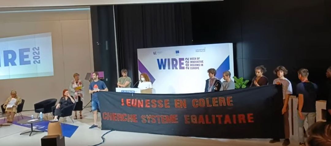 Un collectif d'étudiant·es et de personnels de l'université Paris-Saclay a interpellé la présidente de l'université à l'occasion de la Week of Innovative Regions in Europe, le mercredi 11 mai 2022. Nous reproduisons ici, à la demande du collectif, le texte qui a été lu.