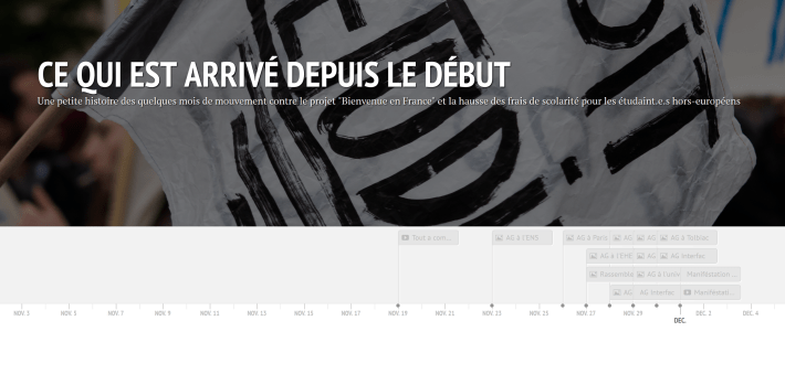 Pour vous raconter ce qui s’est passé depuis le 19 novembre, nous avons réalisé une chronologie interactive, à laquelle vous avez directement accès en suivant le lien ci-dessous.