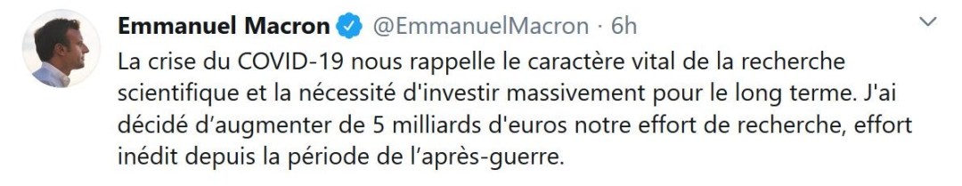 Les effets d’annonce d’Emmanuel Macron en pleine crise du coronavirus renforcent notre colère et notre détermination : nous voulons des moyens et des postes pour produire une recherche de qualité maintenant ! Nous exigeons, pour arriver à l’objectif minimal de 1% du PIB dédié à la recherche publique, 10 milliards, immédiatement et dans les trois années à venir, sous forme de titularisations de chercheur·ses précaires, de créations de postes et d’augmentation des crédits aux laboratoires publics.