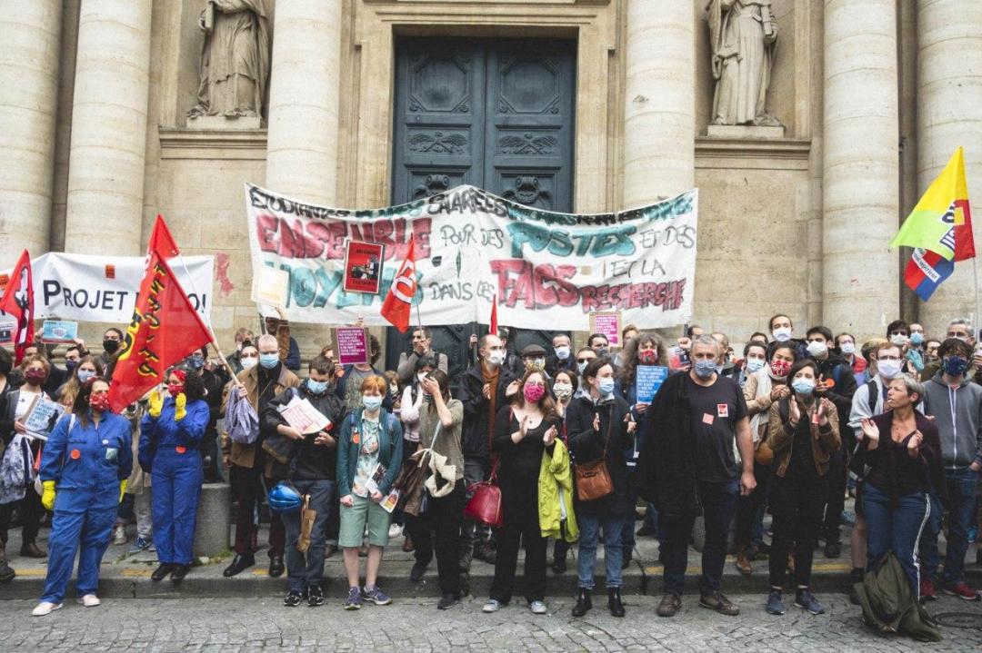 Vendredi 12 juin, place de la Sorbonne, plus de 400 personnes, BIAT·O·SS, enseignant·es-chercheur·ses, chercheur·ses, étudiant·es, se sont réunies à l'appel du comité de mobilisation nationale des Facs et Labos en Lutte, soutenu par les organisations syndicales, pour exprimer, une fois de plus, leur opposition au projet de loi LPPR, que le gouvernement tente de passer en force.